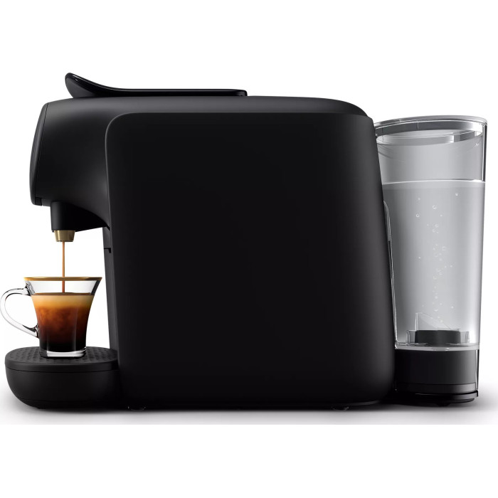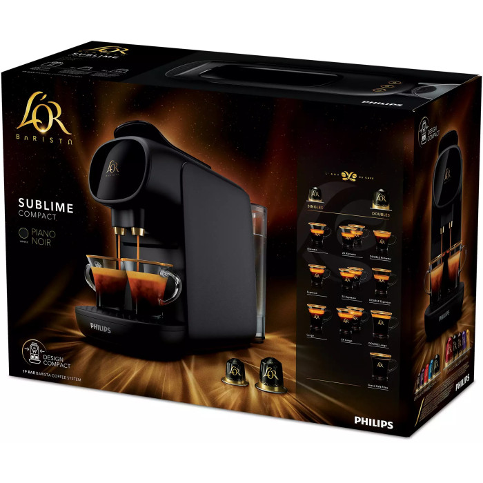 Капсульна кавоварка Philips представляє середній ціновий сегмент і виділяється своїм стильним виконанням і відносно невеликими габаритами корпусу по ширині (менше 20 см). Крім версії у чорному кольорі у продажу зустрічаються родинні варіації в синьому та бежевому (колір слонової кістки). До характерних рис приладу відноситься універсальність: заявлена сумісність як з двома типами капсул L'OR - Espresso single shot або Barista double shot, так і системою Nespresso.