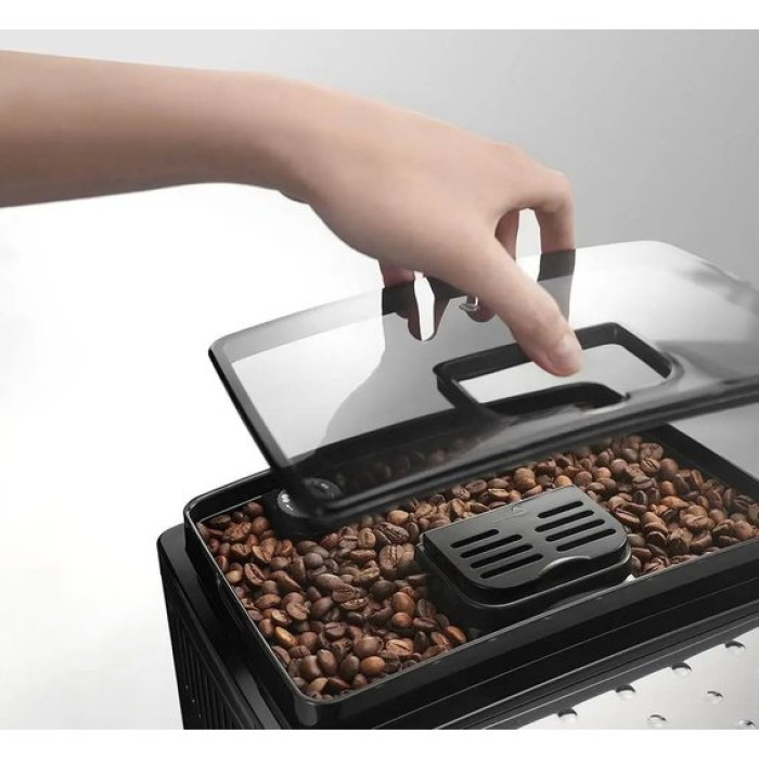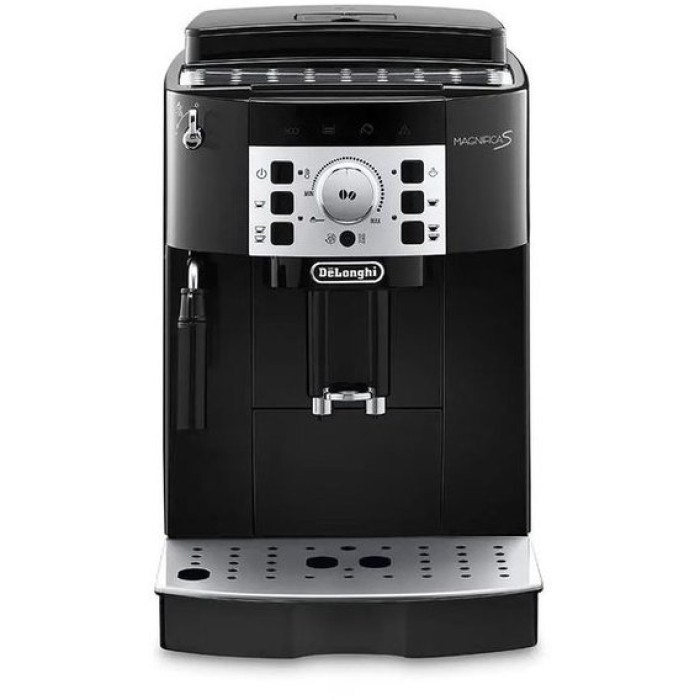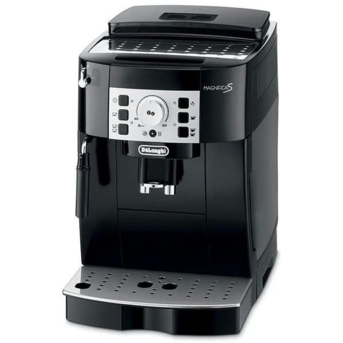 DeLonghi ECAM 22.140.B обладнана новою кнопковою панеллю керування. За допомогою кнопки можна вибрати порцію потрібного об'єму. Температуру води або жорсткість за власною перевагою можна запрограмувати у цій моделі кавоварки. Потужність приладу 1450 Вт, тиск, що створюється в системі, становить 15 бар, це ідеальне значення для якісної екстракції кавового порошку. Адаптер розливу кави спроектовано так, що можна приготувати дві порції напоїв одночасно. Ця функція допомагає заощаджувати час, оскільки вам не потрібно чекати ще одного циклу заварювання. Диспенсер для розливу регулюється на висоті для зручного використання різних чашок. Знімний контейнер для води містить 1,8 літра. Цього обсягу достатньо, щоб уникнути заповнення резервуару дуже часто. Піддон не дозволяє випадковим бризкам потрапляти на поверхню столу. Лоток можна знімати і, у разі потреби, мити.