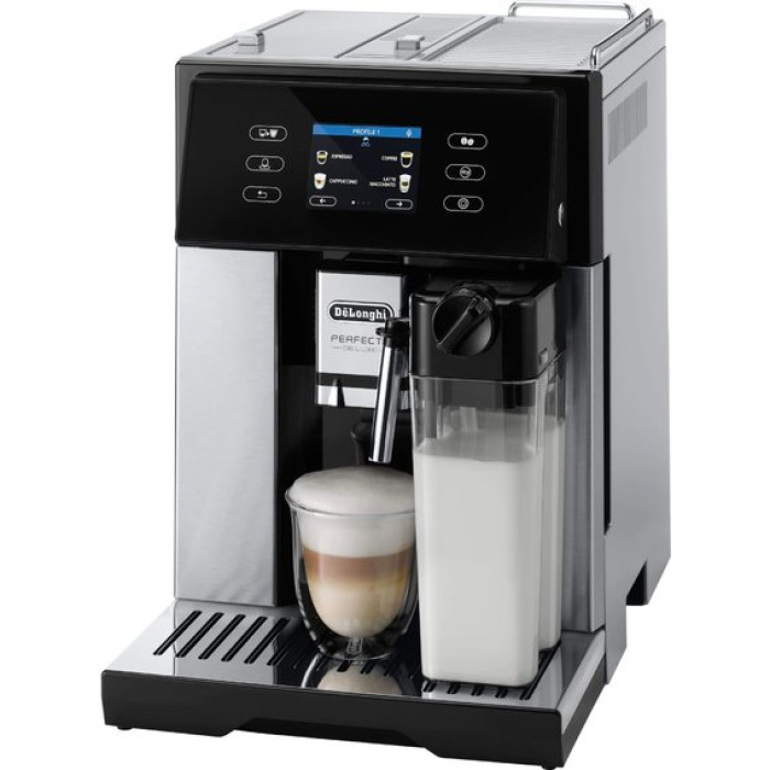 Кавоварка, потужність 1450 Вт, вбудована кавамолка, ємність кавомолки 250 г, тип використовуваної кави – в зернах/мелений, об'єм резервуару для води 1.4 л, резервуар для молока, автоматичне приготування капучино, тиск 15 бар, самоочищення, фільтр для води, дисплей підігрів чашок/кавника.