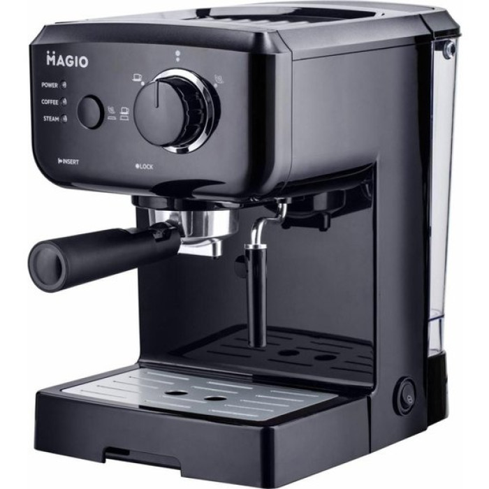Кавоварка Magio MG-962 відноситься до пристроїв ріжкового типу, які застосовують для приготування класичного еспресо. Її так називають через резервуар для кави, крізь який проходить вода під тиском – вона має ручку, яка називається ріжком. Прилад з італійською помпою дозволяє пропустити воду під тиском 15 Бар. Такий спосіб приготування насичує напій максимальною кількістю бадьорих речовин та ароматних олій. Саме це і потрібно міцному еспресо!