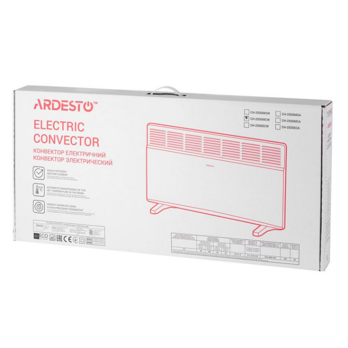 Електричний конвектор з механічним керуванням, класом захисту IP24 та потужністю 2500 Вт. Розрахований на обігрів 25 м2. Конвектори Ardesto підтримують два типи монтажу – настінний та підлоговий. Кронштейни та опори постачаються в комплекті з обігрівачем.