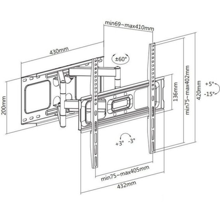 На відміну від стаціонарних підставок, конструкція кріплення дозволяє налаштовувати положення телевізора в кількох площинах, завдяки чому перегляд улюблених телепередач протікає за максимально комфортних умов.