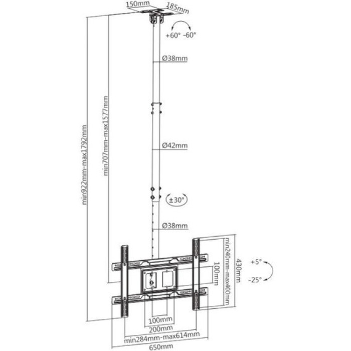 Модель легко монтується на стелю, сумісний зі стандартами VESA. У кронштейні передбачена можливість укладання кабелю усередині штанги. Дозволяє нахиляти екран вниз або повертати без інструментів.
