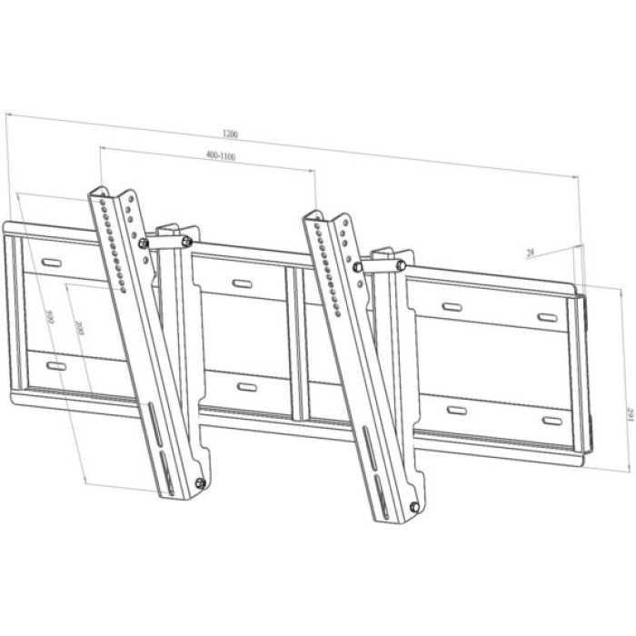 Кронштейн підходить для плазмових, LCD, LED телевізорів та моніторів з діагоналлю більше 50'' дюймів та вагою до 100 кг. Стандарт VESA, що підтримується: від 200×200 мм до 1000×400 мм