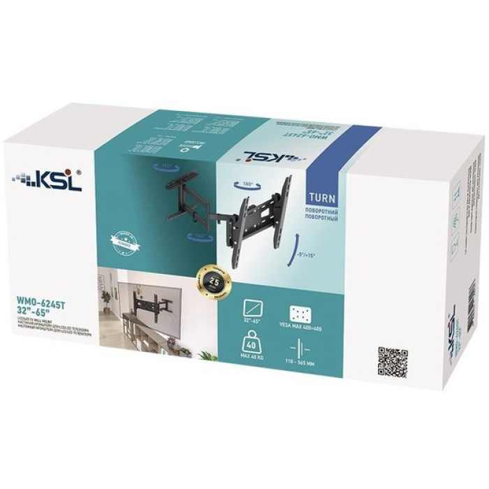 Кронштейн підходить для плазмових, LCD, LED телевізорів та моніторів з діагоналлю 32-65 дюймів та вагою до 40 кг. Стандарт VESA, що підтримується: від 200×200 мм до 400×400 мм