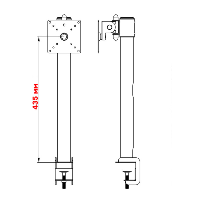 Висота стійки: 500 мм, висота установки кронштейна вільно регулюється на всій висоті стійки до 435 мм.
