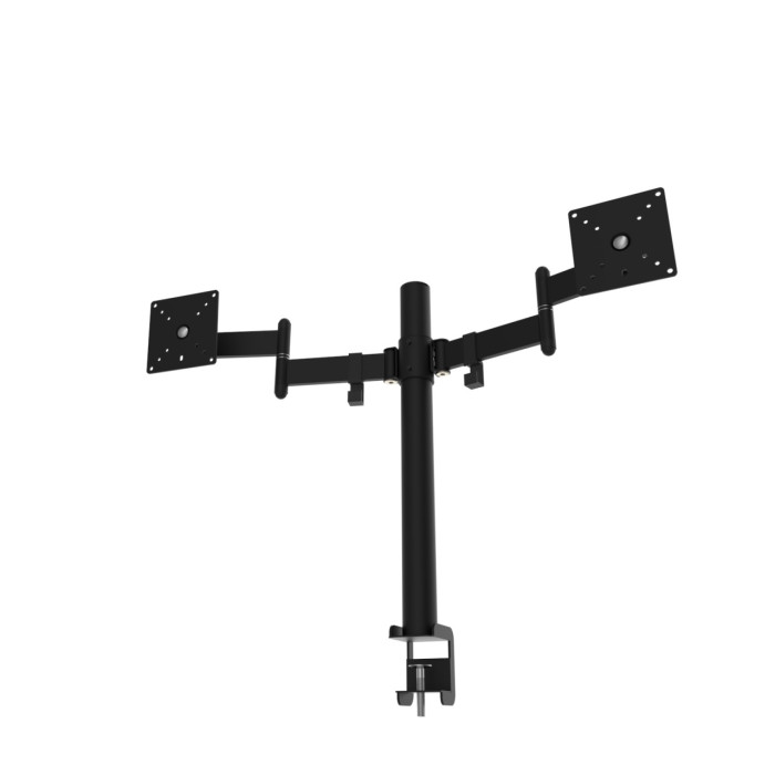 Наша стійка забезпечує якісне кріплення для двох дисплеїв із діагоналлю від 14 до 28 дюймів, із загальною масою до 15 кг до столу за допомогою струбцини.