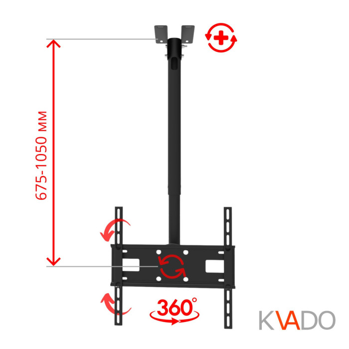 Кронштейн стельовий КВАДО К-183 ідеально підійде для кріплення великого телевізора.