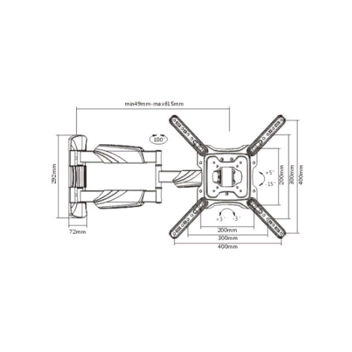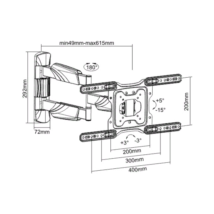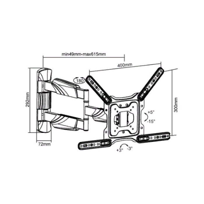 Настінний кронштейн із високоміцного алюмінію для сучасних плоских телевізорів діагоналлю 26"-37" та вагою не більше 35 кг. Конструкція кронштейна дозволяє проводити регулювання нахилу та повороту телевізора на стіні. Кронштейн обладнаний вбудованим рівнем для точної та зручної установки. У комплекті до кронштейна поставляються всі необхідні для монтажу елементи кріплення.