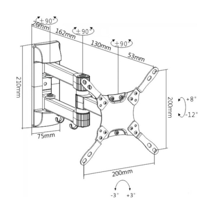 Настінний кронштейн похило-поворотної конструкції Logan Cosmo3B дозволяє повісити на стіні LED телевізор діагоналлю 23-42", при цьому витримає номінальну вагу аж до 30 кг. Надійна та легка конструкція впорається з будь-якою LCD панеллю без істотного збільшення її габаритів, адже 370 мм Кронштейн виконаний з потужних та тонких профілів, швидко та легко монтується на стіну за стандартами VESA (200х200 мм).