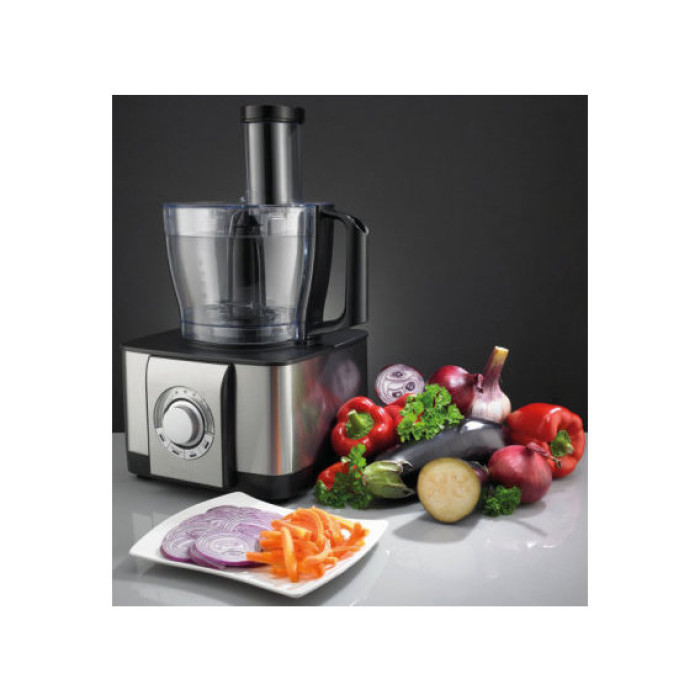 Кухонний комбайн Gorenje SBR1000BE здатний стати втіленням вашої мрії на кухні, тому що обладнаний безліччю корисних пристроїв, які спрощують приготування страв. Модель потужністю 1100 Вт відрізняється компактним корпусом і чашами, що дає можливість економити вільний простір на кухні. Завдяки можливості плавного регулювання швидкісних режимів досягається ніжна та повітряна консистенція, а для забезпечення режиму турборежим виведена окрема кнопка. Наявність гумових ніжок дає можливість стійко стояти на поверхні столу, а універсальна система блокування приладу дозволяє використовувати комбайн навіть дітям. Крім цього, модель Gorenje SBR1000BE має спеціальне підсвічування кнопок для наочності та дуже простого керування комбайном.