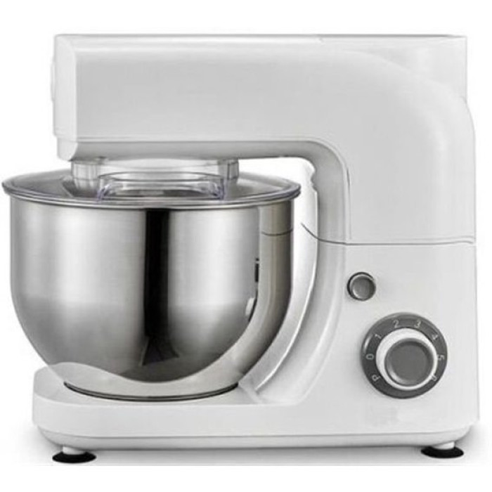 Кухонна машина Grunhelm GKM0018 є стильним і сучасним мережевим апаратом, виготовленим у пластиковому корпусі білого кольору. Стаціонарна модель обладнана надійним двигуном потужністю 1900 Вт, що функціонує на 6 швидкостях та в імпульсному режимі. Двигун виробляє планетарне обертання насадок, у якому вони рухаються вздовж кола чаші, обертаючись навколо осі. Таке переміщення забезпечує якісне збивання та ефективне перемішування інгредієнтів. Продукти містяться у місткій чаші з нержавіючої сталі об'ємом 5 літрів. Прилад укомплектований трьома насадками: віночком, гаком для тесту та насадкою для збивання, за допомогою яких можна готувати велику кількість страв. Кухонна машина Grunhelm GKM0018 встановлена на ковзаних ніжках і керується ергономічним поворотним перемикачем.