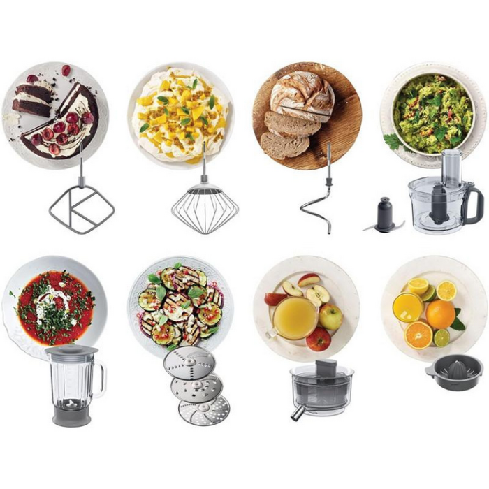 Кухонна машина Kenwood KHH 322 WH MultiOne - це багатофункціональний помічник кухаря та кондитера. З усіма аксесуарами, що входять до комплекту, пристрій легко замінить десяток різних кухонних пристроїв та приладів. Машина допоможе замісити однорідне тісто, швидко нарізати овочі та фрукти, перемолоти м'ясо на фарш, вичавити сік, приготувати коктейль.
