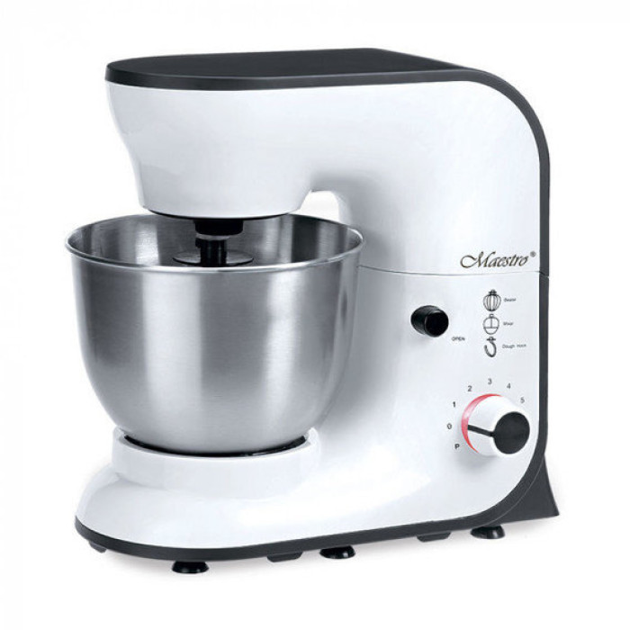 Планетарний міксер Maestro MR-559 White відмінно справляється не тільки із замісом різних сортів тіста (білкове, бісквітне, листкове, заварне, дріжджове, пісочне), а й з приготуванням різних кондитерських мас (вершки, креми, муси, суфле, безе). Технологія "планетарного обертання" - це такий спосіб обертання, коли привід здійснює кругові рухи в один бік, а віночок (мішалка) в цей час обертається навколо своєї осі в іншу, дозволяє змішувати по всьому об'єму чаші.