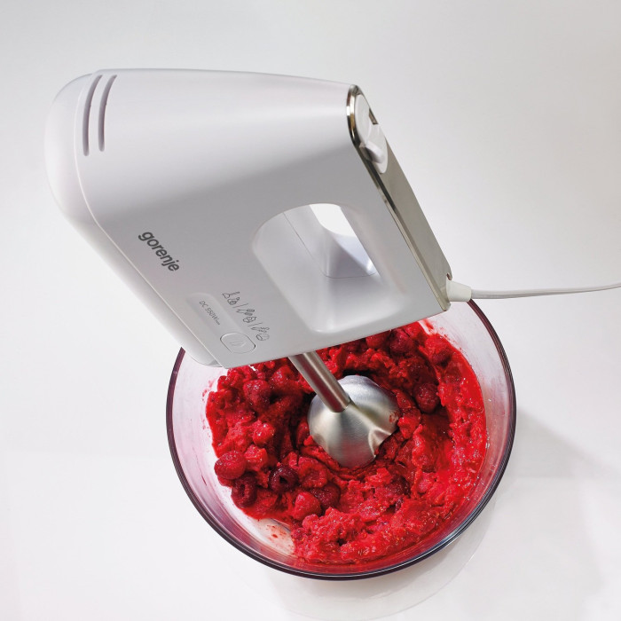 На панелі керування у верхній частині міксера знаходяться перемикач для увімкнення та вимкнення, кнопки вибору швидкості та увімкнення імпульсного режиму та кнопка вилучення насадок. З нашими потужними міксерами ви точно досягнете бажаних результатів. Ці високоякісні міксери призначені для змішування, збивання, вимішування та приготування пюре. До них додаються два віночки, два гаки для вимішування тіста та насадка-блендер. Продуманий дизайн ручки міксера забезпечує максимальну зручність та ефективність роботи. За ручку дуже зручно братися. Міксер одночасно легкий та зручний в експлуатації.