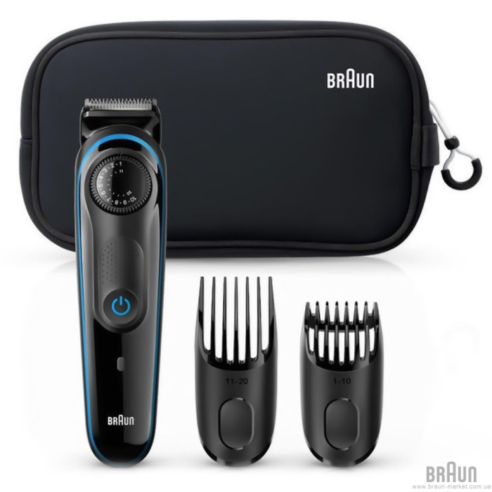 Спосіб гоління: сухе. Гребінець для підрівнювання бороди. Гребінець для стрижки волосся. Косметичка. Час роботи від акумулятора 60 хв. Діапазон довжин: 1-10 мм та 11-20 мм (крок 0,5 мм). Живлення: від мережі/акумулятора.