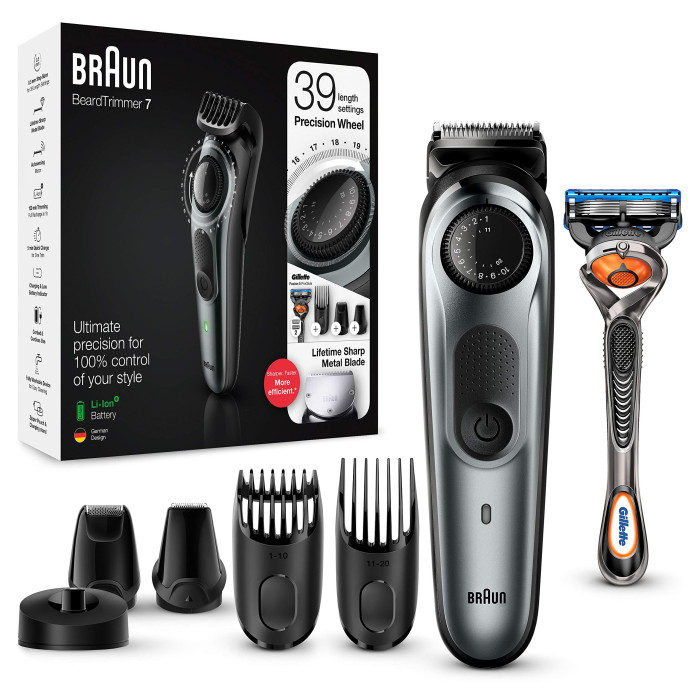 Декілька насадок, що входять в комплектацію виробу, забезпечать ефективне гоління і стрижку як короткого, так і довгого волосся. 39 видів зміни довжини локонів на двох гребенях (1-20 мм, 1-10мм) гарантують отримання потрібного результату, а пристосування для точного стайлінгу та гоління - якісне укладання та видалення рослинності зі шкіри. Металеві леза відмінно зрізають навіть тонкі волоски і мають необмежений термін експлуатації. Система AutoSense від Braun регулює продуктивність тримера залежно від густоти волосся, даючи можливість провести стрижку бороди будь-якого типу. Регулювальне коліщатко, розташоване на верхній площині ручки, робить керування приладом простим і зручним.