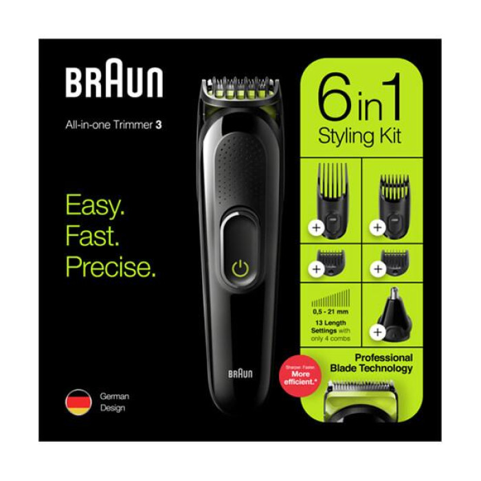 Компактний триммер Braun MGK3221 забезпечує комплексний догляд за волоссям всього тіла. З його допомогою можна стригти голову, коригувати брови, підправляти бороду та вуса, а також видаляти волосся з вух та носа. Для цього апарат має мотор потужністю 2 Вт, який легко справляється навіть з густим і жорстким волоссям. Більш того, сталеві леза мають властивість самозаточуватись, тому висока ефективність стрижки зберігається навіть протягом довгих років експлуатації пристрою.