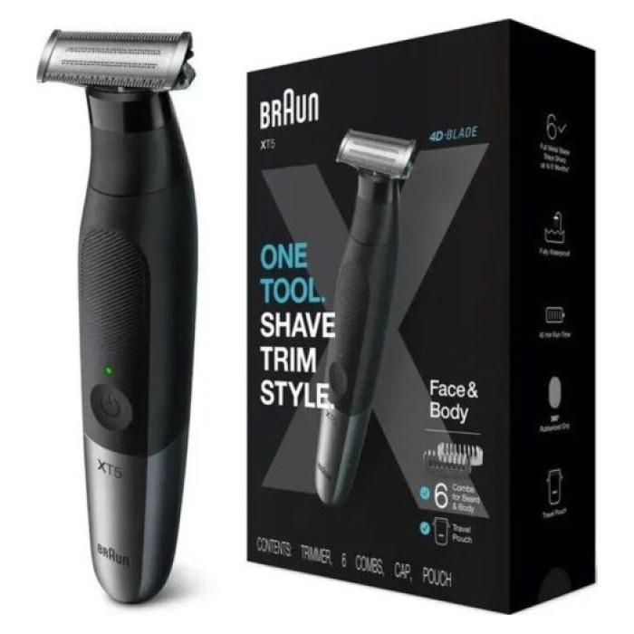 Голіть, підстригайте та контуруйте за допомогою одного пристрою: універсальної електробритви та тримера для бороди для чоловіків. Легко, швидко та зручно з кожним поїздом. Для особи (гребінці 1, 2, 3 та 5 мм) та тіла (гребінці 0 та 3 мм).