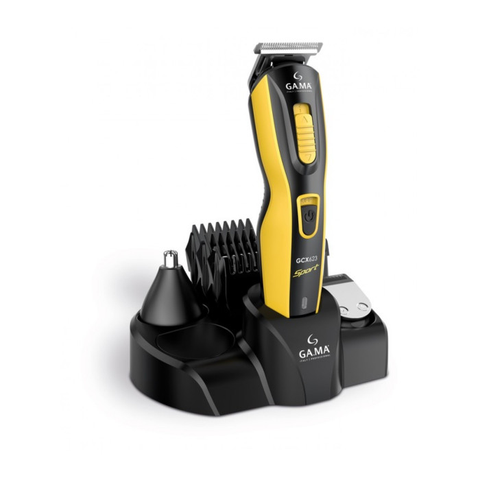 Багатофункціональна машинка GCX623 Sport оснащена 4 змінними головками: для стрижки волосся, триммером для бороди, бритвою та триммером для носа та вух.
