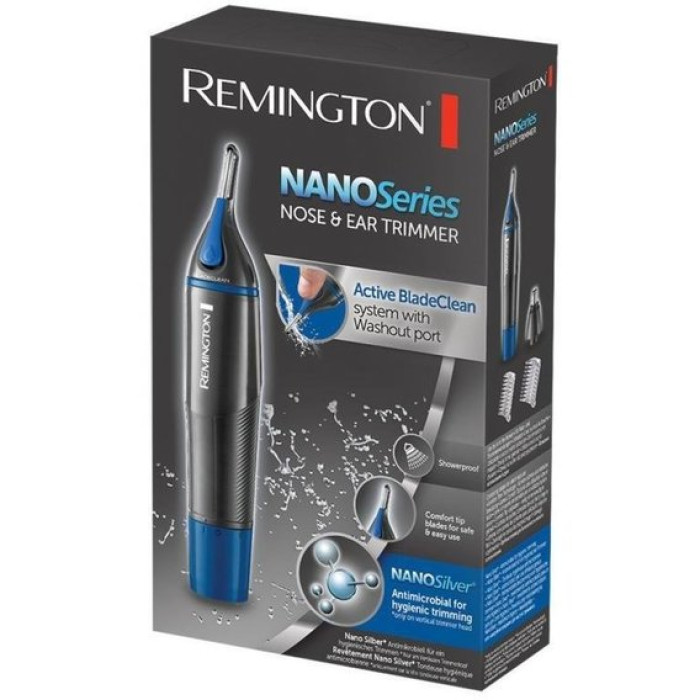 Тример для носа і вух Remington NE3850 дає змогу стежити за гігієнічним станом делікатних ділянок на обличчі. Вертикальний тример має антибактеріальне покриття, що запобігає проникненню бактерій, і не подразнює шкіру в процесі догляду. Роторна насадка призначена для видалення небажаного волосся в носі та вухах, і зробити це безпечно та чисто допоможе система Comfort Trim. Тример для носа і вух Remington NE3850 працює від батарейки типу АА і його можна підвішувати на спеціальній петлі. Після закінчення стрижки слід провести вологе чищення приладу.