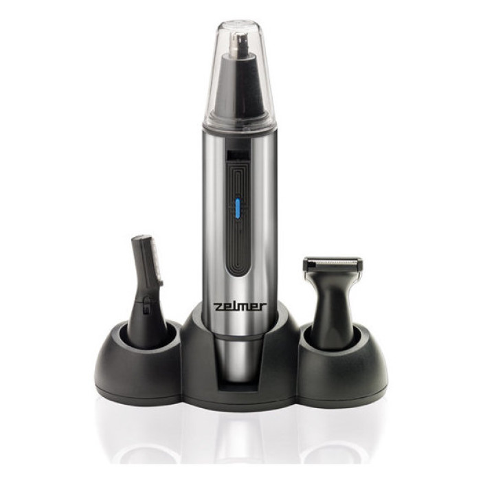 Зручний тример Zelmer ZNT0300 для домашнього використання для догляду за волоссям. Вертикальна насадка для брів, поворотна насадка для носа та вух. Насадка для стрижки бороди.
