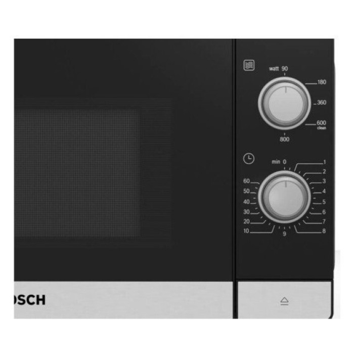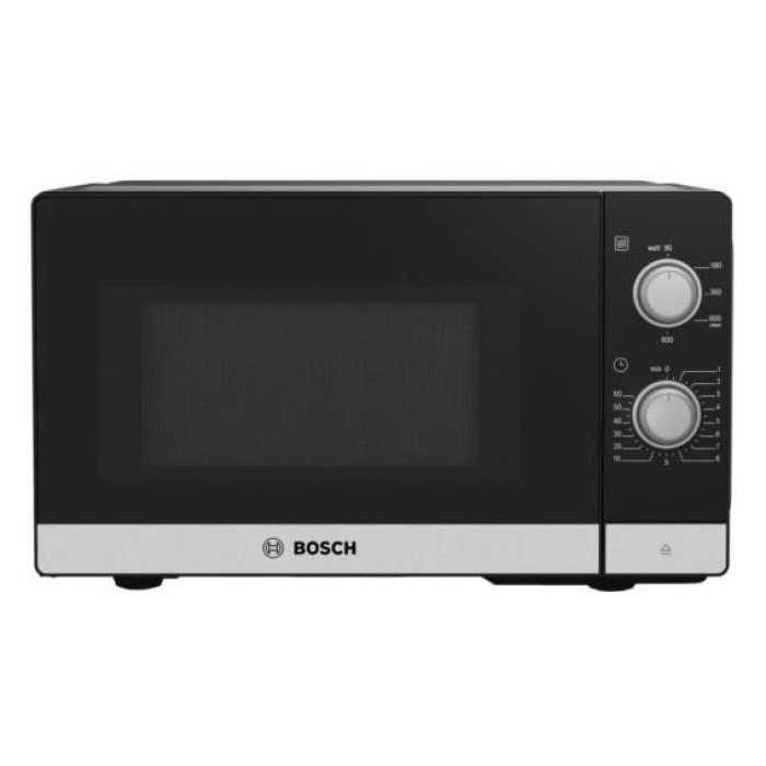 Мікрохвильовка Bosch FFL020MS1 виготовляється в сучасному дизайні в стильному корпусі з міцної та довговічної нержавіючої сталі. Модель максимальною споживаною потужністю 1270 Вт забезпечена скляними дверцятами, які відкриваються натисканням кнопки. Її робоча камера об'ємом 20 літрів вкрита термостійкою емаллю, яка очищається від харчових забруднень гідролітичним способом. У камері встановлено скляний поворотний стіл діаметром 27 см і є яскраве LED освітлення. Енергія для приготування страв, розморожування продуктів і розігрівання їжі створюється джерелом НВЧ-випромінювання потужністю 800 Вт, а ступінь нагріву регулюється поворотним перемикачем п'ятьма ступенями. Мікрохвильовка Bosch FFL020MS1 оснащена вбудованими програмами приготування їжі, функцією автоматичного розморожування і механічним таймером на 60 хвилин. Вона обладнана системами охолодження та захисного вимкнення.
