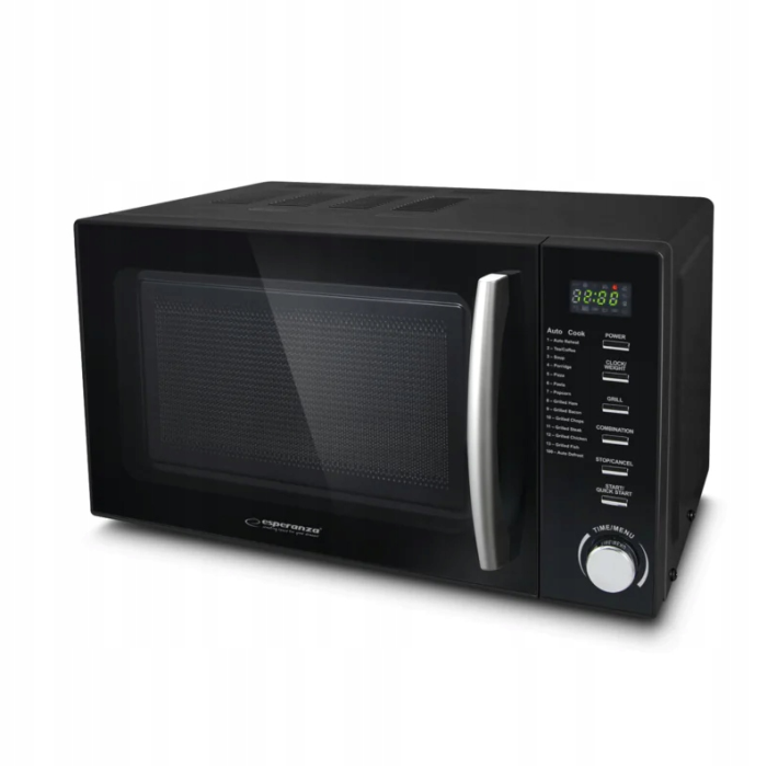 Мікрохвильова піч Esperanza COCINERO EKO010 - це мікрохвильова піч, яка допоможе вам швидко та легко приготувати смачні страви. Вона має велику ємність 20 літрів і багато програм для приготування та розморожування продуктів. Легко керувати піччю за допомогою сенсорної панелі та вбудованого дисплея. Піч працює з напругою 230 В і має потужність 700 Вт. Мікрохвильова піч Esperanza COCINERO EKO010 - це ідеальний вибір для тих, хто цінує якість, функціональність і стиль.