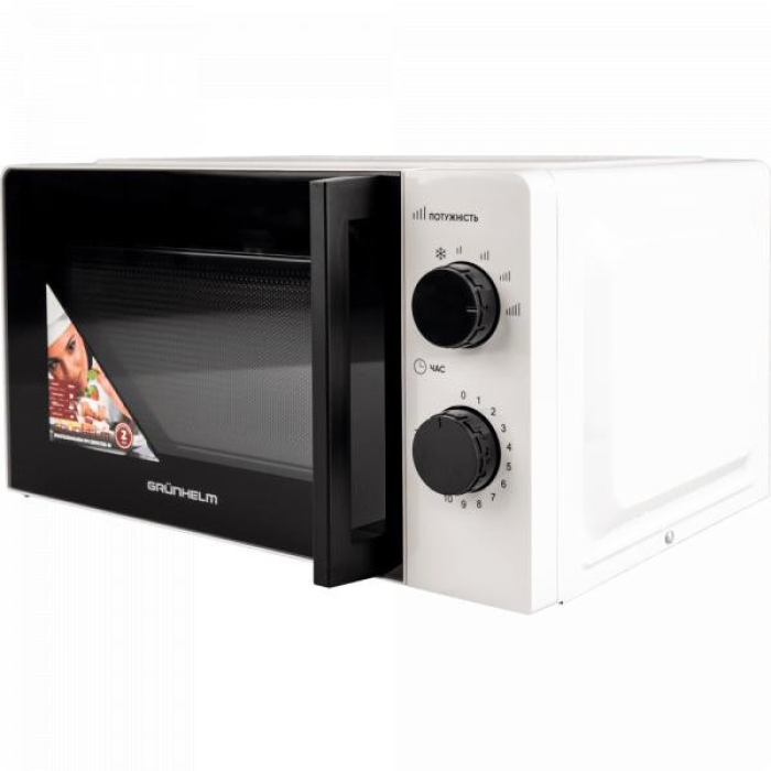 Класична мікрохвильова піч Grunhelm 20MX708 - прилад за допомогою якого можна швидко та комфортно підігрівати та готувати їжу, а також розморожувати продукти. Внутрішня поверхня робочої камери моделі об'ємом 20 літрів покрита міцною та легкоочисною емаллю. У приладі встановлений поворотний столик діаметром 245 мм, на якому контейнер з їжею повертатиметься, щоб його вміст швидко та рівномірно нагрівався. Пристрій виконує нагрівання їжі за допомогою НВЧ-випромінювача потужністю 800 Вт. Рівень енергії регулюється шістьма ступенями за допомогою механічного поворотного перемикача. Таймер на 30 хвилин дозволить задавати час нагріву, приготування чи розморожування їжі.