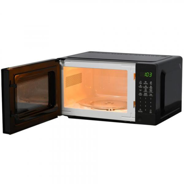 Завдяки унікальній технології виробництва СВЧ компактна зовні та містка всередині, має об’єм 20 л. Модель KUMTEL HMDG-01 BLACK з електронним керуванням, LED дисплеєм та кнопкою відкривання дверцяти. Покриття в середині – біла емаль, що легко миється звичайними мийними засобами, без потреби використання спеціальних засобів за доглядом.