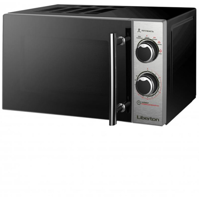 Мікрохвильова піч Liberton LMW-2079M - окремостояща модель, виконана в кольорах нержавіючої сталі і чорним об'ємом 20 літрів. У ній знаходиться поворотний стіл діаметром 245 мм, а вся внутрішня поверхня покрита сірою високоміцною емаллю. Потужність НВЧ-випромінювання приладу регулюється 6 рівнями максимального значення 700 Вт. Час роботи пристрою можна встановити вбудованим механічним таймером на 35 хвилин. Щоб розморозити заморожені продукти, слід застосувати функцію автоматичного розморожування. Дверцята моделі відкриваються за допомогою зручної ручки. Закінчення приготування чи розігріву їжі супроводжується звуковим сигналом. Управління мікрохвильовою піччю Liberton LMW-2079M проводиться механічними круглими перемикачами з міткою, яка поєднується з вибраним режимом роботи на шкалі, що нанесена на корпусі.