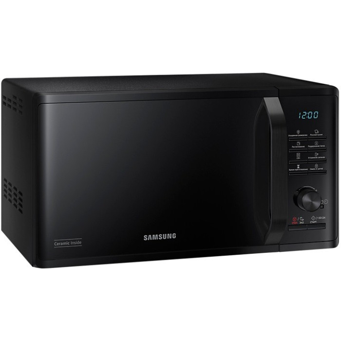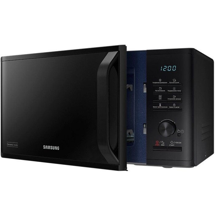 Мікрохвильова піч типу «Соло» з об'ємом камери 23 літри та біокерамічним покриттям. Вихідна потужність складає 800 Вт, споживана – 1250 Вт. Має 6 рівнів потужності, електронне керування з кнопками та поворотним перемикачем. Підтримує режими мікрохвиль, автоматичного приготування, розморожування, розтоплення, видалення запахів та енергозбереження. Оснащена таймером, годинником, функцією підтримки тепла, звуковим сигналом та блокуванням від дітей. Дверцята відкриваються вліво за допомогою ручки. Діаметр піддону – 28,8 см.