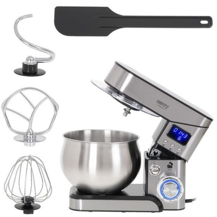 Планетарний міксер стає почесним обладнанням наших кухнях. Ми цінуємо його багатофункціональність та практичність. Планетарний рух міксера дозволяє точно змішувати всі інгредієнти, а 6 налаштувань швидкості дозволяють регулювати швидкість обертання в залежності від типу продуктів, що змішуються. Потужність 2000 Вт необхідна для виконання таких трудомістких та енергоємних завдань, як замішування тіста для хліба, булочок або круасанів. Нижчі рівні швидкості ідеальні, якщо ви хочете збити яєчні білки, крем або змішати інгредієнти для пісочного тіста. Головка, що нахиляється, і велика чаша з нержавіючої сталі об'ємом до 5 літрів - гарантія комфортної роботи та комбінування ще більшої кількості інгредієнтів. Стійкі присоски не дозволять міксеру пересуватися по стільниці, а кришка із захистом від бризок захистить його від бруду. Особливістю даної моделі є наявність РК-дисплея, на якому відображається установка часу роботи в діапазоні 30 секунд - 30 хвилин і встановлення обертів двигуна: 1-6 швидкостей + імпульсний режим.