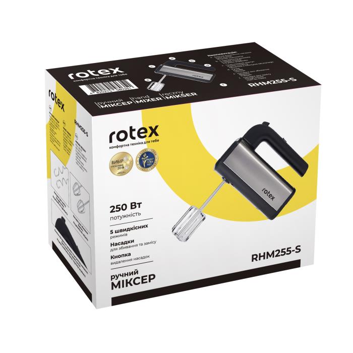 Живлення - 220-240В, 50Гц, Потужність 250W. 5 швидкостей. Хромовані насадки. 2 віночки для збивання яєць та кремів. Насадка для тесту. Кнопка вилучення насадок. Колір: нержавіюча сталь. Гарантія – 12 місяців.