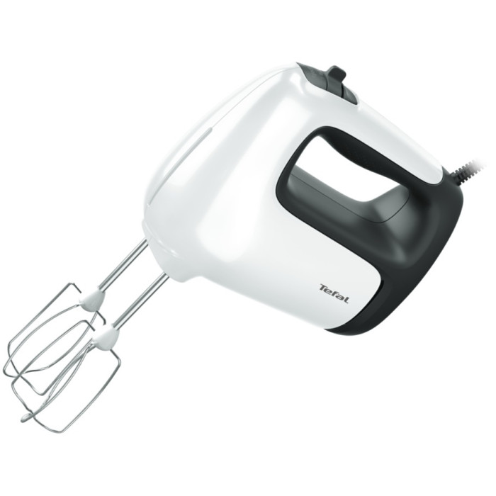 Ручний міксер із серії Tefal Prep'Mix відразу ж привертає увагу своїм зовнішнім виглядом: виробник вибрав безпрограшне поєднання білого та чорного кольорів, яке підходить практично під будь-який інтер'єр кухні. Невелика вага і ергономічна ручка роблять використання комфортнішим навіть при тривалій роботі, а плоска основа дозволяє приладу займати стійке вертикальне положення.