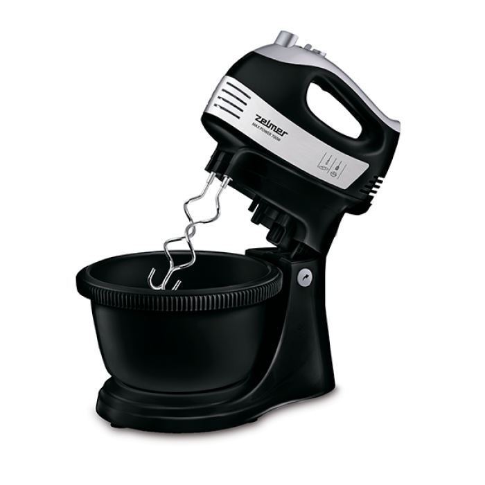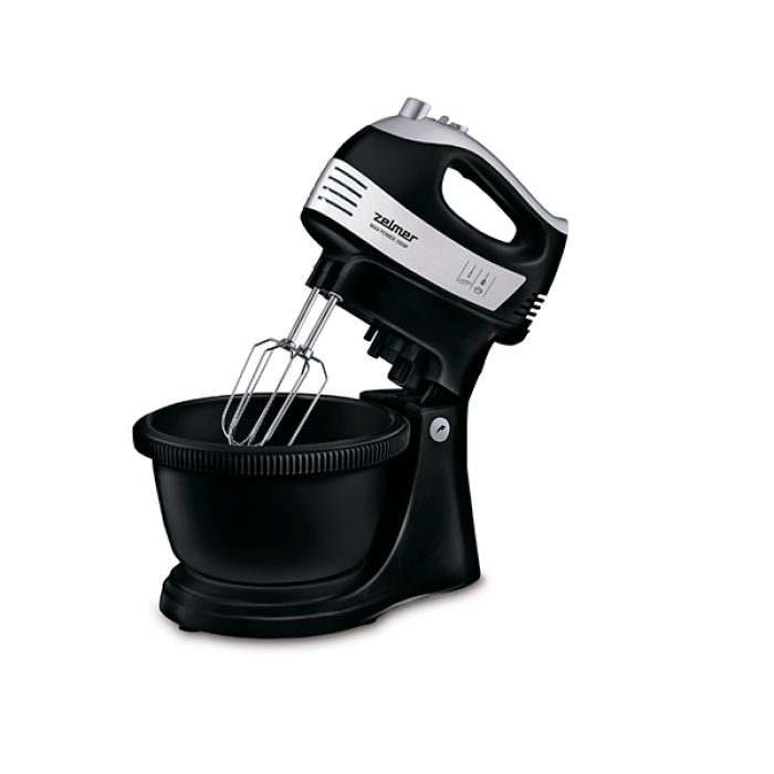 Наш міксер потужністю 700 Вт оснащений обертовою чашею об'ємом 2.5 л, що самостійно і ретельно змішує всі додані інгредієнти. Пристрій має 5 швидкісних режимів та функцію турбо, що дозволяє швидко та ефективно змішувати продукти. Завдяки покриттю soft touch на ручці міксер міцно тримається в руці та зручний у використанні. До складу пристрою також входять два віночки та гаки для тесту.