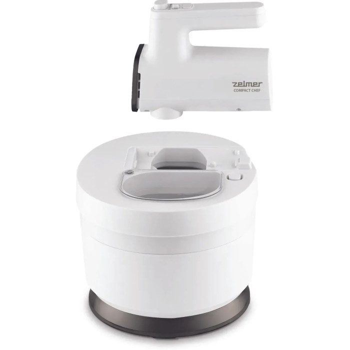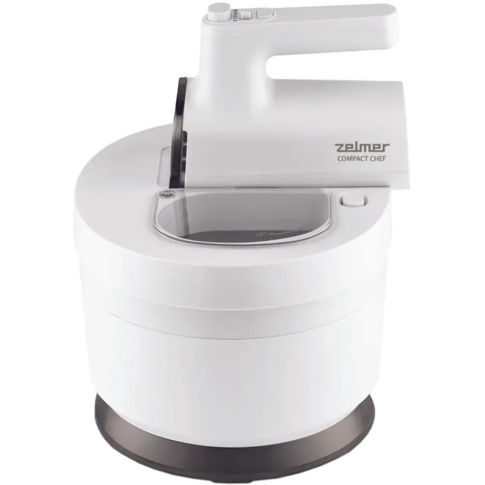Унікальний дизайн міксера не тільки зручний у використанні, але дозволяє легко зберігати прилад. Поворотна пластикова чаша об'ємом 3,5 л вмістить усі необхідні інгредієнти, а кришка чаші захистить робочу поверхню від бризок. У комплекті йдуть 2 насадки для збивання та 2 гаки для тесту, що робить модель Zelmer ZHM 2759 універсальним помічником на кухні.