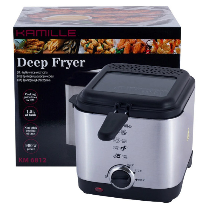 Фритюрниця Kamille - це пристрій, завдяки якому ви зможете швидко та смачно приготувати картоплю фрі, крильця, цибульні кільця, пончики. Цікавий дизайн та простота використання – його найбільші переваги! Можна з упевненістю сказати, що кожен з нас любить цей вид закусок і завдяки нашому продукту вся сім'я зможе насолодитися ними! Смажені закуски – слабкість багатьох гурманів. Немає нічого кращого, ніж хрумка картопля, картопля фрі з солодкої картоплі або гострі крильця, які зроблять зустрічі з друзями, вечірнє кіно чи матч улюбленої команди ще приємнішими. Люди, які люблять солодке, оцінять зручність смаження своїх улюблених пончиків чи млинців. Більше не потрібно використовувати різні каструлі, розмір яких ніколи не задовольняє нас повністю. Просте керування роботою.