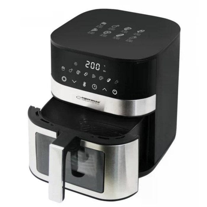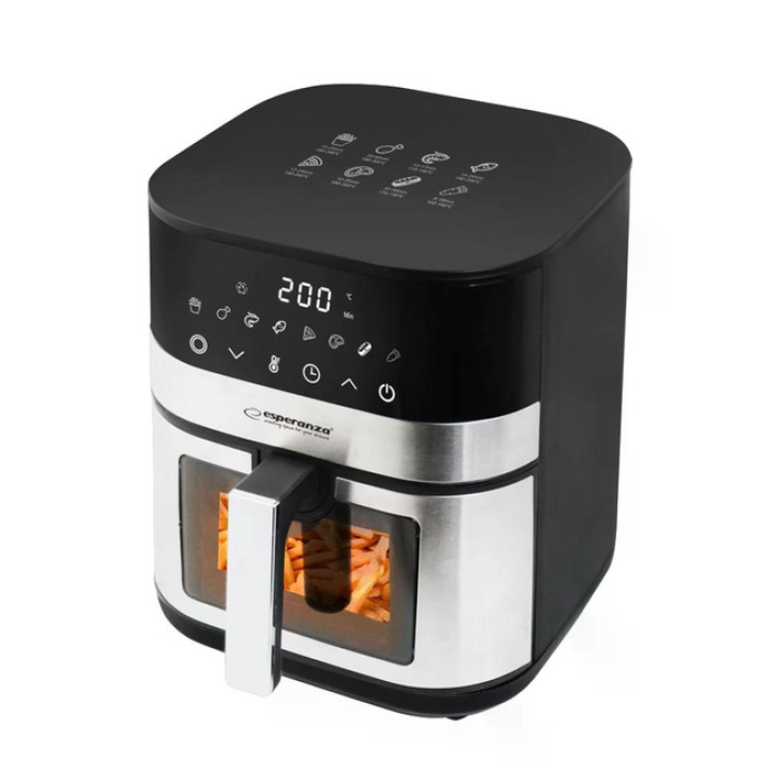 Аерофритниця Esperanza WITH WINDOW Pesce Alla Griglia дозволяє готувати смачні та корисні страви з мінімальною кількістю олії або без неї. Завдяки прозорому вікну в корпусі можна спостерігати за процесом приготування без необхідності відкривати пристрій. Модель оснащена сенсорною панеллю управління, має декілька автоматичних програм, регулювання температури до 200 ° C та таймер до 60 хвилин. Компактний дизайн та антипригарна чаша роблять пристрій зручним у використанні та догляді, а потужність 1800 Вт забезпечує швидке нагрівання. Ідеальний вибір для тих, хто цінує здорову їжу та комфорт.
