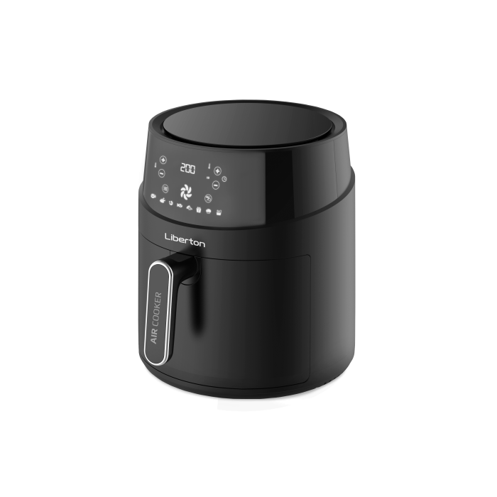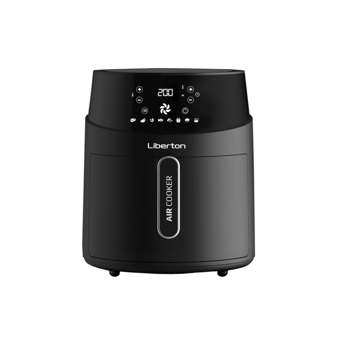 Потужність: 1300 Вт; Об'єм чаші: 4,5 л; Функції: 5 (випічка, смаження, гриль, розігрів, фритюр); Автоматичні програми: 8 (м'ясо, курка, креветки, риба, піца, картопля, випічка, овочі); Діапазон температур: 80-200 град.; Тип управління: сенсорне; Додатково: термостат, таймер, антипригарне покриття чаші, відключення, захист від перегріву; Комплектація: підставка для тостів, щипці для їжі, щітка для олії; Тип нагрівального елемента: електричний тен; Розмір виробу: 26х31, 7х31, 3 см; Колір чорний.