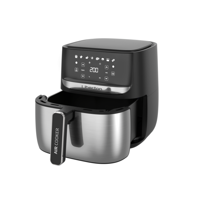 Потужність: 1700 Вт; Об'єм чаші: 6 л; Функції: 5 (випічка, смаження, гриль, розігрів, фритюр); Автоматичні програми: 8 (картопля, бекон, курка, креветки, м'ясо, випічка, овочі, риба); Діапазон температур: 80-200 град.; Тип управління: сенсорне; Додатково: оглядове вікно, термостат, таймер, антипригарне покриття чаші, відключення, захист від перегріву; Комплектація: підставка для тостів, щипці для їжі, щітка для олії; Тип нагрівального елемента: електричний; Розмір виробу: 28,4 х30х34, 5 см; Колір чорний.