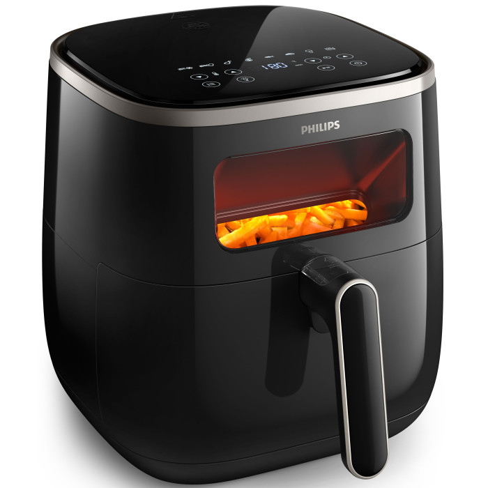Технологія RapidAir. Автоматичне вимкнення. Віконце для перегляду. Усі знімні компоненти можна мити в посудомийній машині. Кошик аерогрилю QuickClean має антипригарне покриття. Додаток HomeID з рецептами смачних страв