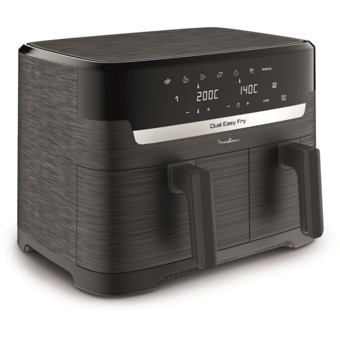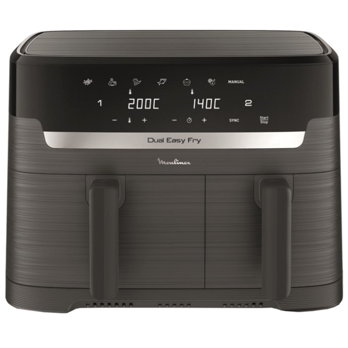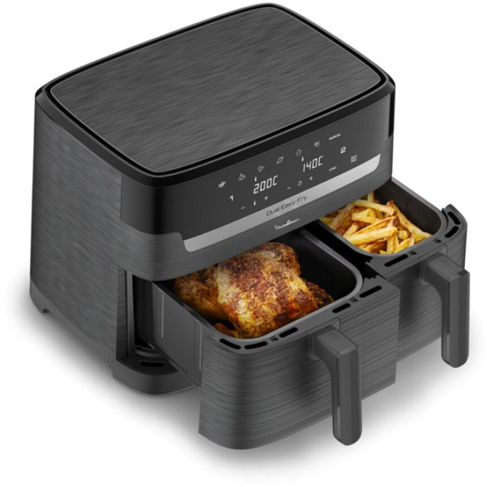 Насолоджуйтесь приємною їжею з Dual Easy Fry EZ901H20 від Moulinex . Мультипіч поєднує в собі аерофритюрницю і гриль для смачних страв з хрусткою скоринкою. Використання олії мінімальне, можна готувати навіть без неї.