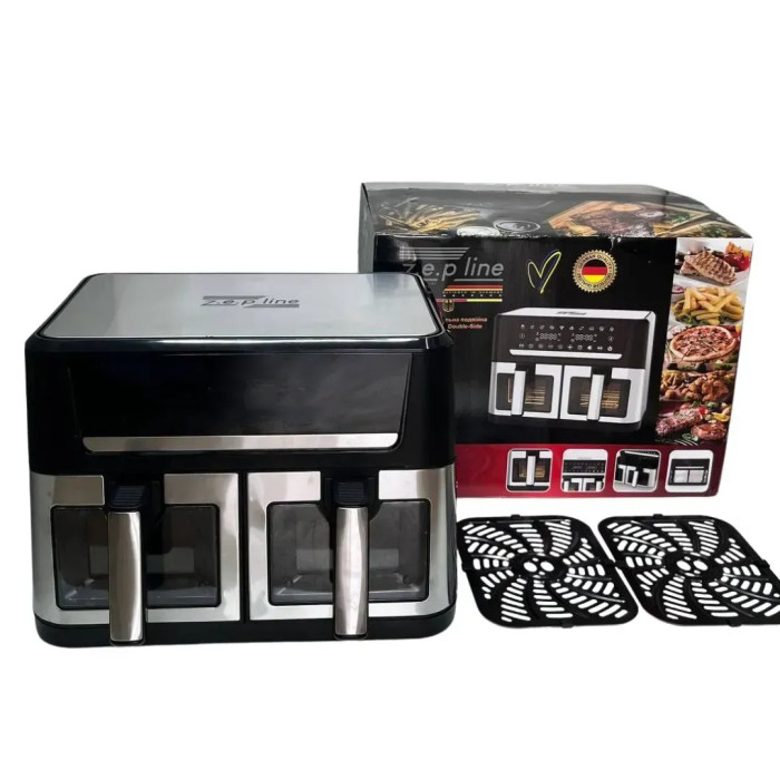 Двокамерна аерофрітюрниця Zepline 8L+8L 4200 Вт - це інноваційний кухонний пристрій для зручного та здорового приготування їжі. Завдяки потужності 4200 Вт і двом незалежним кошикам по 8 літрів кожна, ви зможете одночасно готувати дві різні страви, не змішуючи смаки. Відмінний вибір для великих сімей чи любителів домашньої кулінарії.