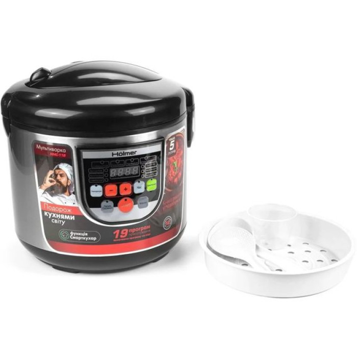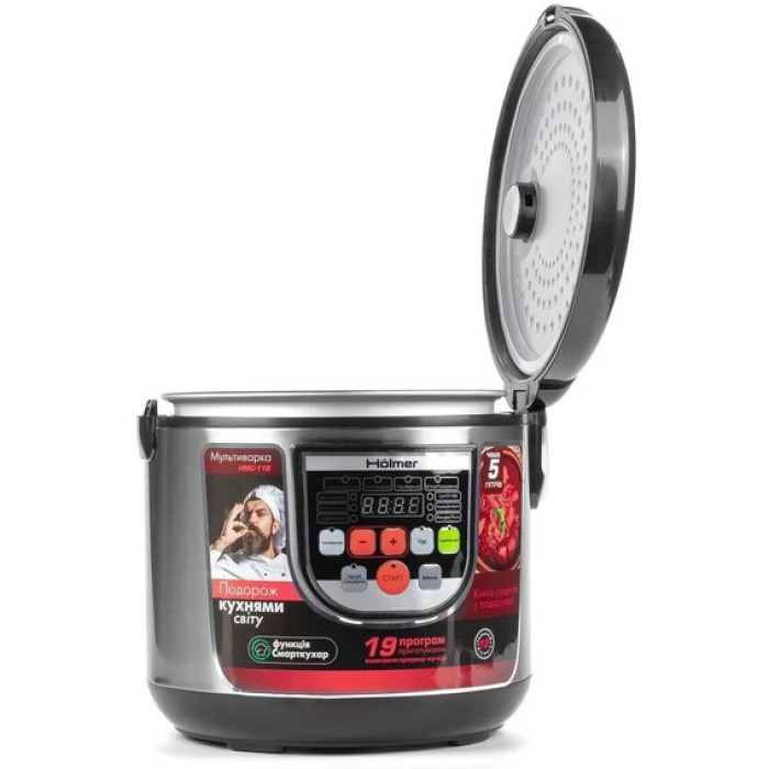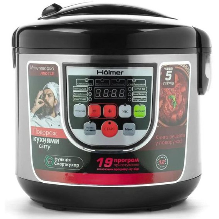 Мультиварка Hölmer HMC-11В – проста в управлінні, містка та дуже ефективна помічниця на кухні.Має широкий функціонал, 19 програм приготування (пароварка, випічка, варіння, гасіння, підігрів та ін.), LED дисплей, відкладений старт (24 години), внутрішня чаша з антипригарним покриттям.Мультиварка Hölmer HMC-11В допоможе вам приготувати все, що вам потрібно від сніданків до основних страв.Смачні супи, ситні тушковані страви, корисні страви на пару, вишукані десерти і навіть хрусткий хліб!Функція "Смартповар" дозволить підлаштовувати можливості цієї мультиварки під вашу власну рецептуру, регулюючи температуру та час, як Вам заманеться.