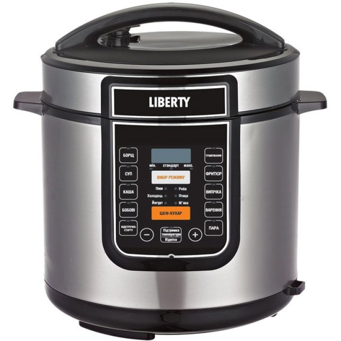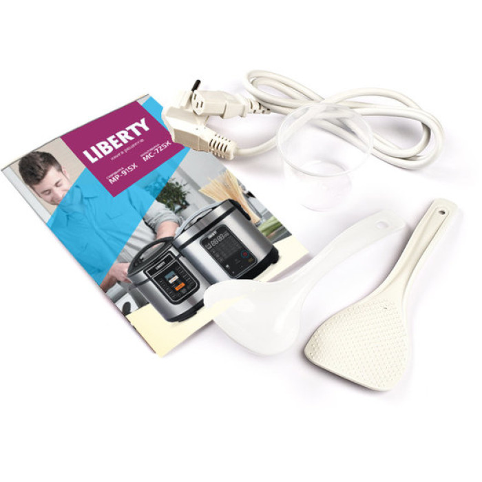 Мультиварка-скороварка Liberty MP-915 X – багатофункціональний прилад з електронним керуванням потужністю 900 Вт. Крім виконання функцій мультиварки та скороварки, вона працює ще як пароварка, електроплита та електродуховка. Модель укомплектована чашею об'ємом 5 літрів із подвійним антипригарним покриттям. У неї викладаються всі необхідні продукти для приготування страви. 15 автоматичних програм під керуванням вбудованого процесора дозволяють одним натисканням кнопки на сенсорному дисплеї запустити процес приготування їжі з різноманітного меню. Завдяки функції "Свій рецепт", користувачеві надано можливість порядок приготування улюбленої їжі записати в пам'ять пристрою. За допомогою таймера відстрочки старту можна готувати їжу до певного часу. Прилад здатний підтримувати температуру страви, якщо її не планують відразу ж подавати до столу, причому цю функцію можна скасовувати. Мультиварка-скороварка Liberty MP-915 X може працювати в ручному режимі, коли температура і час задаються самостійно.