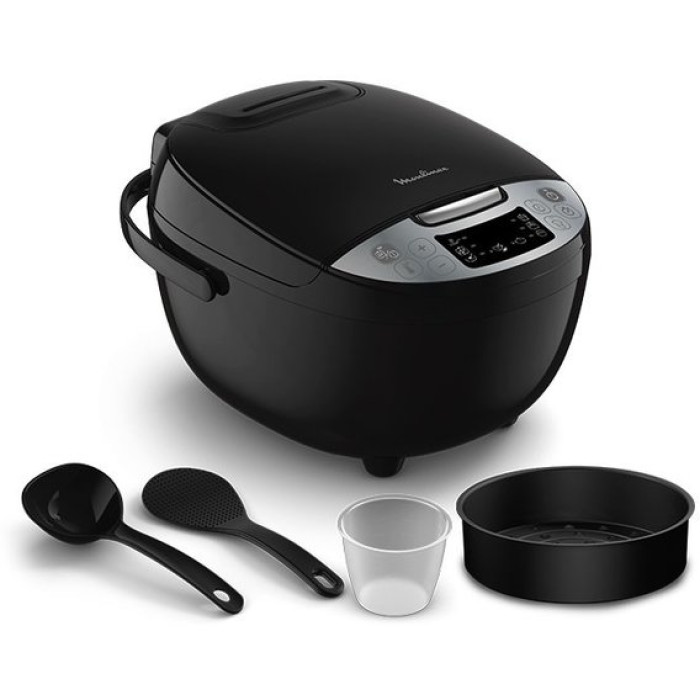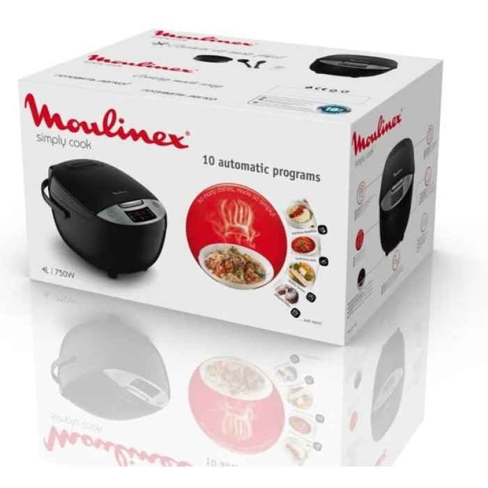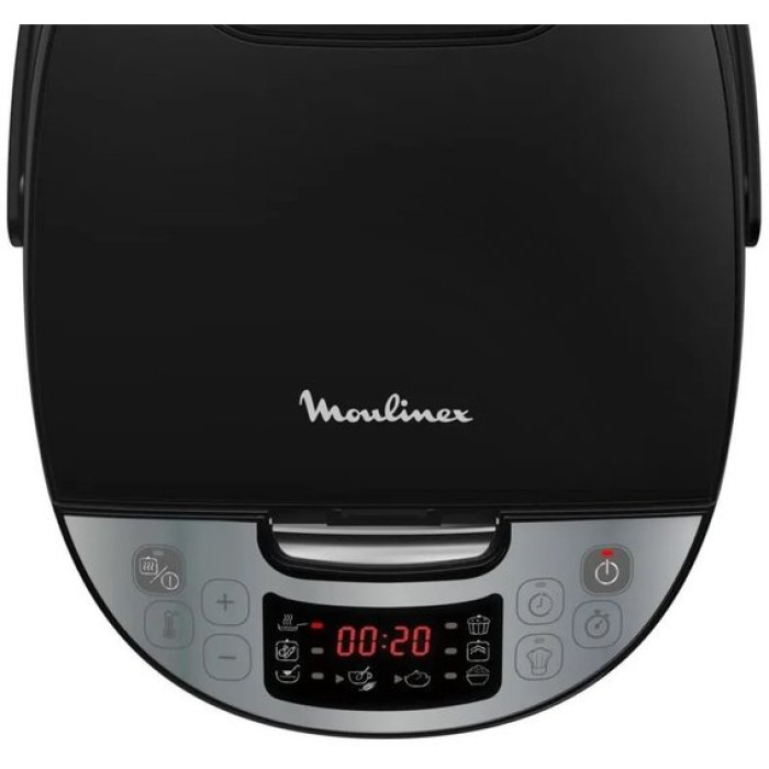 Мультиварка Moulinex MK611832 виготовляється у сучасному дизайні у міцному металевому корпусі строгого чорного кольору із сріблястою електронною панеллю управління. Продукти викладаються у чотирилітрову чашу з антипригарним покриттям, після чого вибирається одна з десяти вбудованих програм. Вони автоматично готують різні страви, в тому числі дієтичні на пару, випічку і хліб, а також йогурт. Є ручний режим, в якому свобода кулінарної творчості надана користувачеві – він встановлює температуру в діапазоні 40-160 С та час приготування від 5 хвилин до 9 годин. Мультиварка Moulinex MK611832 має таймер відстрочки, що дозволяє готувати їжу до певного терміну. При необхідності можна активувати функцію підтримання температури, і тоді їжа залишиться гарячою до моменту подачі на стіл.