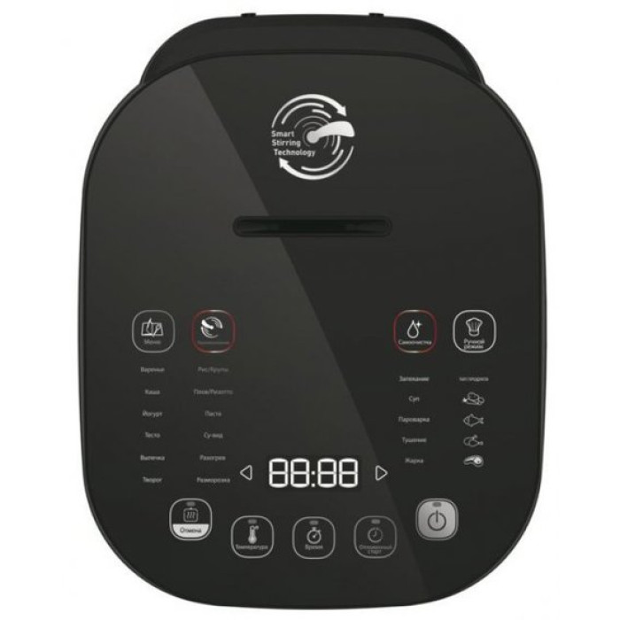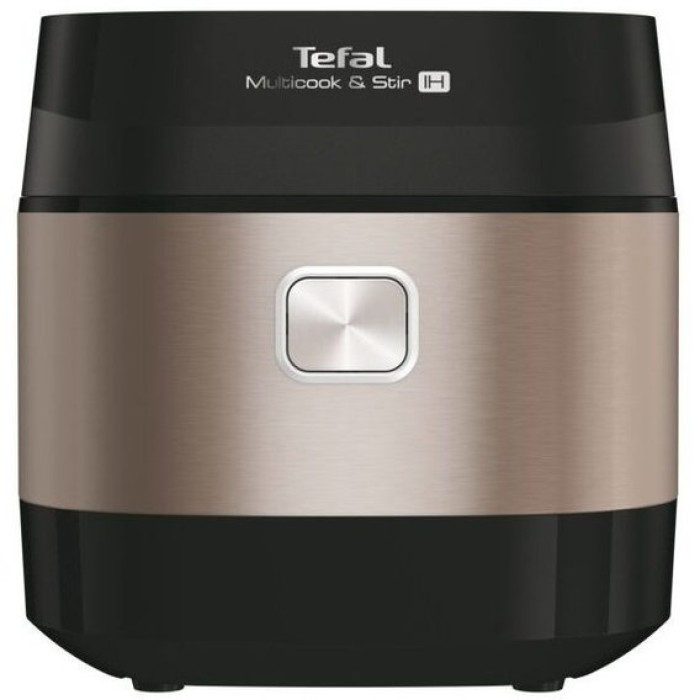 Мультиварка Tefal Multicook & Stir IH RK905A34 виготовляється в елегантному стильному дизайні в корпусі зі згладженими гранями. Прилад потужністю 1200 Вт оснащений двадцятьма однією програмою та електронною панеллю управління. У ньому встановлена чаша об'ємом 5 літрів особливої сферичної форми з 5-шаровими стінками товщиною 2 мм та антипригарним покриттям. Чаша забезпечена пристроєм, що перемішує, який використовується не тільки під час приготування їжі, але і для її якісного миття. Така конструкція у поєднанні з індукційною технологією нагрівання забезпечує високу теплопередачу, оптимальну циркуляцію тепла і, як наслідок, рівномірне прогрівання продуктів з усіх боків. Слід зазначити також корисну функцію «Свій рецепт», таймер відстрочки до 24 годин та систему розігріву та підтримання температури. У комплекті з мультиваркою Tefal Multicook & Stir IH RK905A34 поставляється парова корзина, ложка для рису, половник та мірна склянка.
