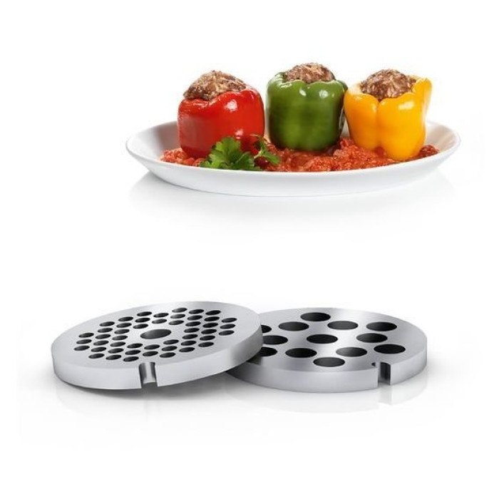 М'ясорубка Bosch MFW3X13B в біло-чорному корпусі володіє потужністю 2000 Вт і стане надійною помічницею в приготуванні домашніх напівфабрикатів. Вона здатна подрібнити до 2.5 кг м'яса в хвилину. При цьому модель має 2 перфорованих диска для фаршу, що дозволяють виконати дрібну і велику рубку. Система реверсу допоможе витягти застряглий шматочок зсередини, не розбираючи механізм.