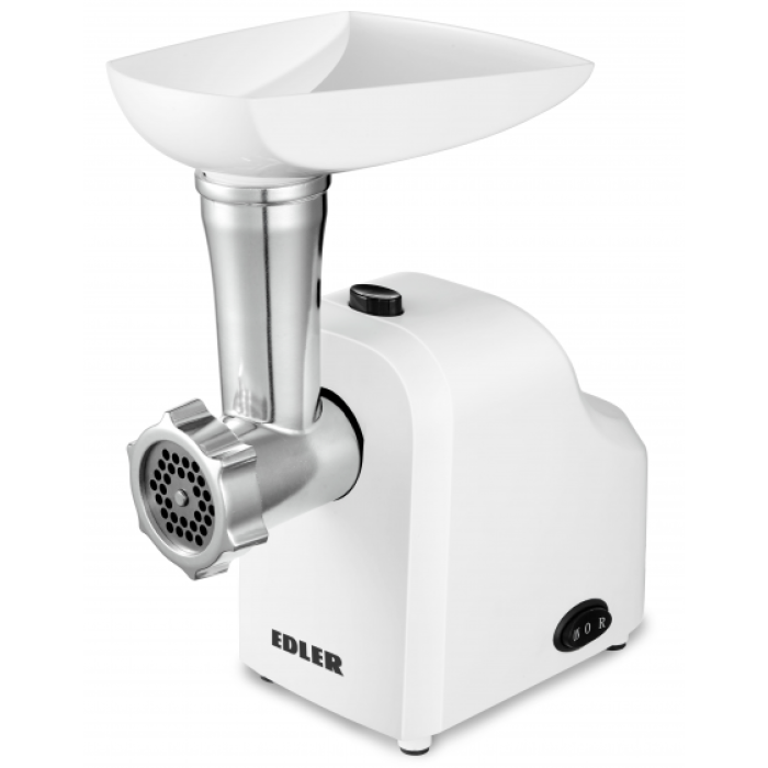 Електрична м'ясорубка, номінальна потужність 350 Вт, грати для фаршу, насадка для ковбаси, корпус та лоток із пластику.